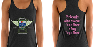 Logo Front and "Friends that sweat together stay together" Back